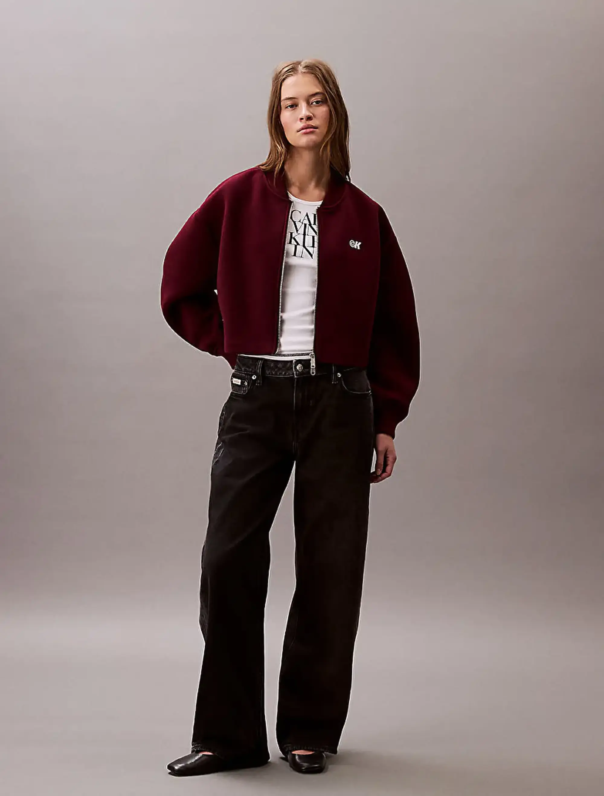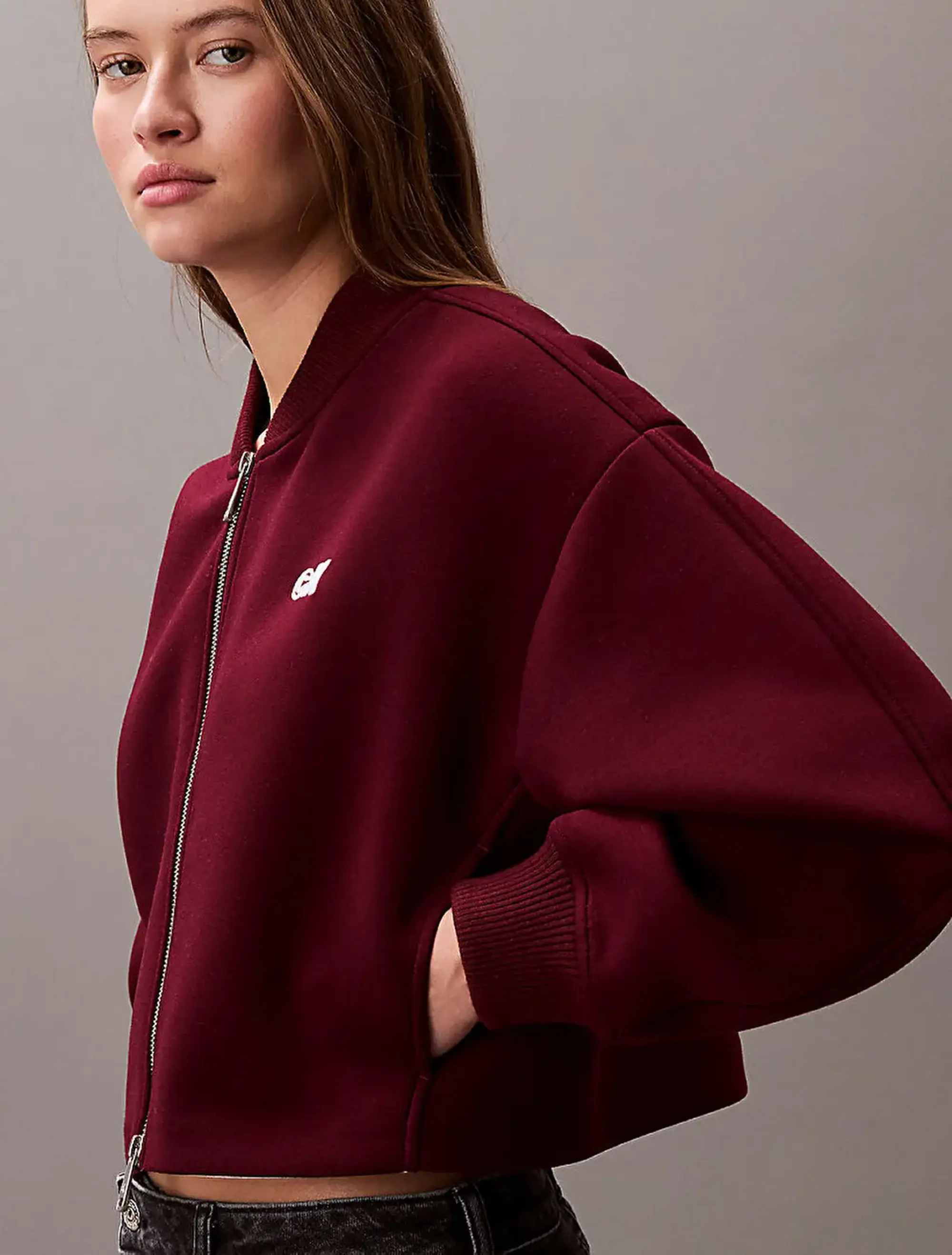 Calvin Klein A- OVERSIZED SCUBA ZIP BOMBER JA Bordo Kadın Ceket