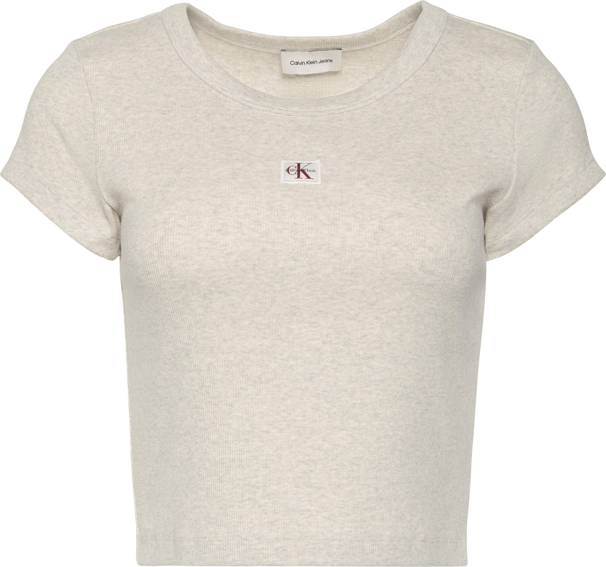 Calvin Klein A- WOVEN LABEL 2X2 RIB BABY TEE Gri Kadın T-Shirt