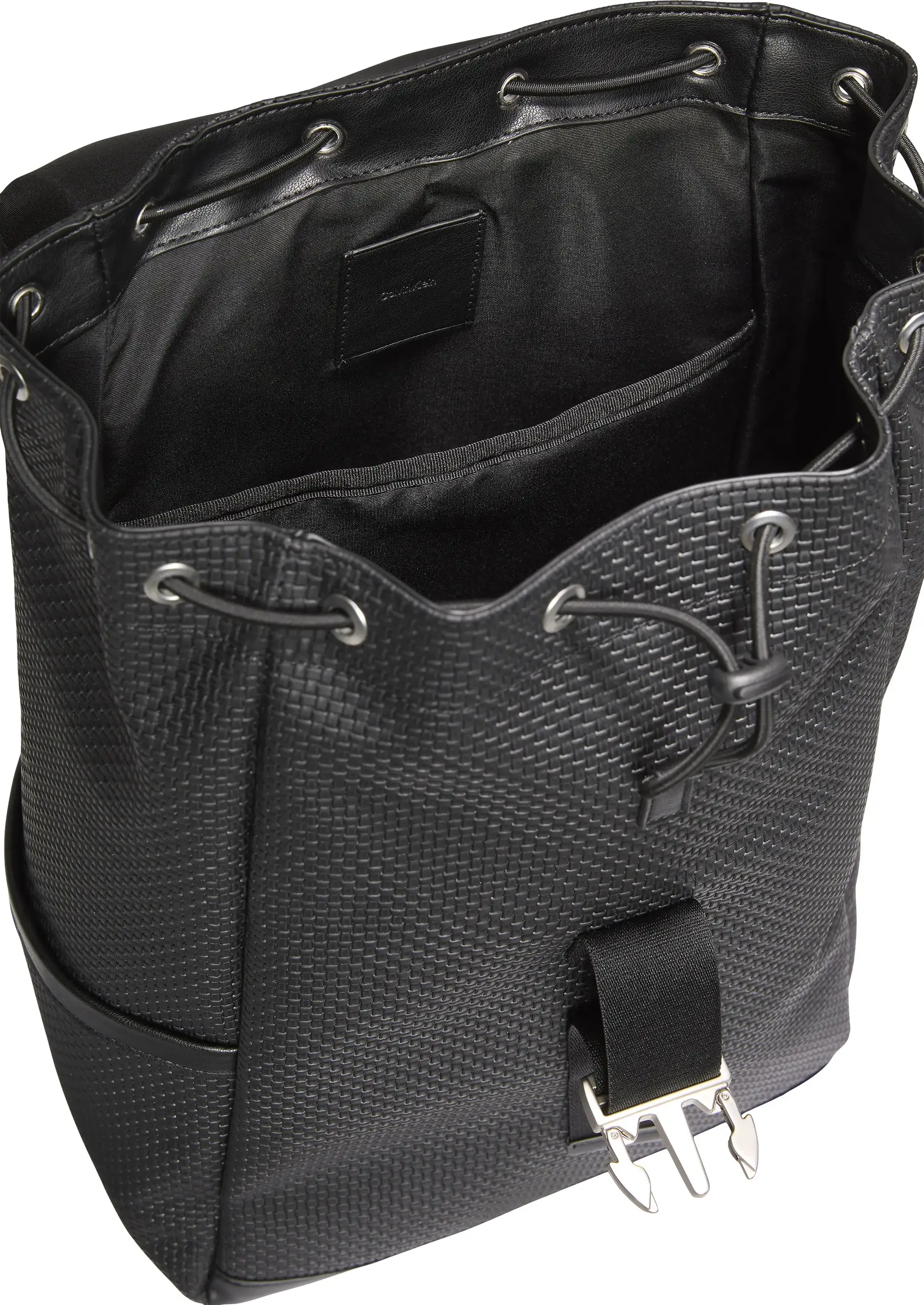 Calvin Klein EMBOSSED WOVEN FLAP BACKPACK Erkek Siyah Sırt Çanta