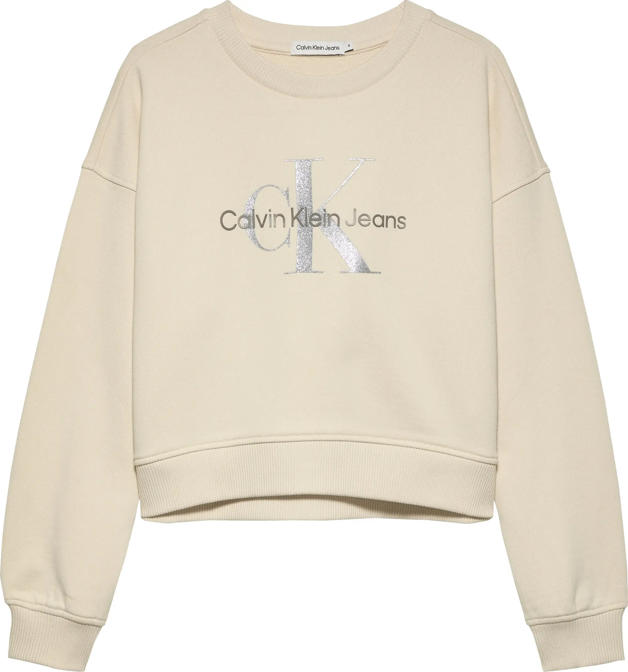 Calvin Klein GLITTER MONOLOGO CN, CKS Krem Kadın Sweatshirt