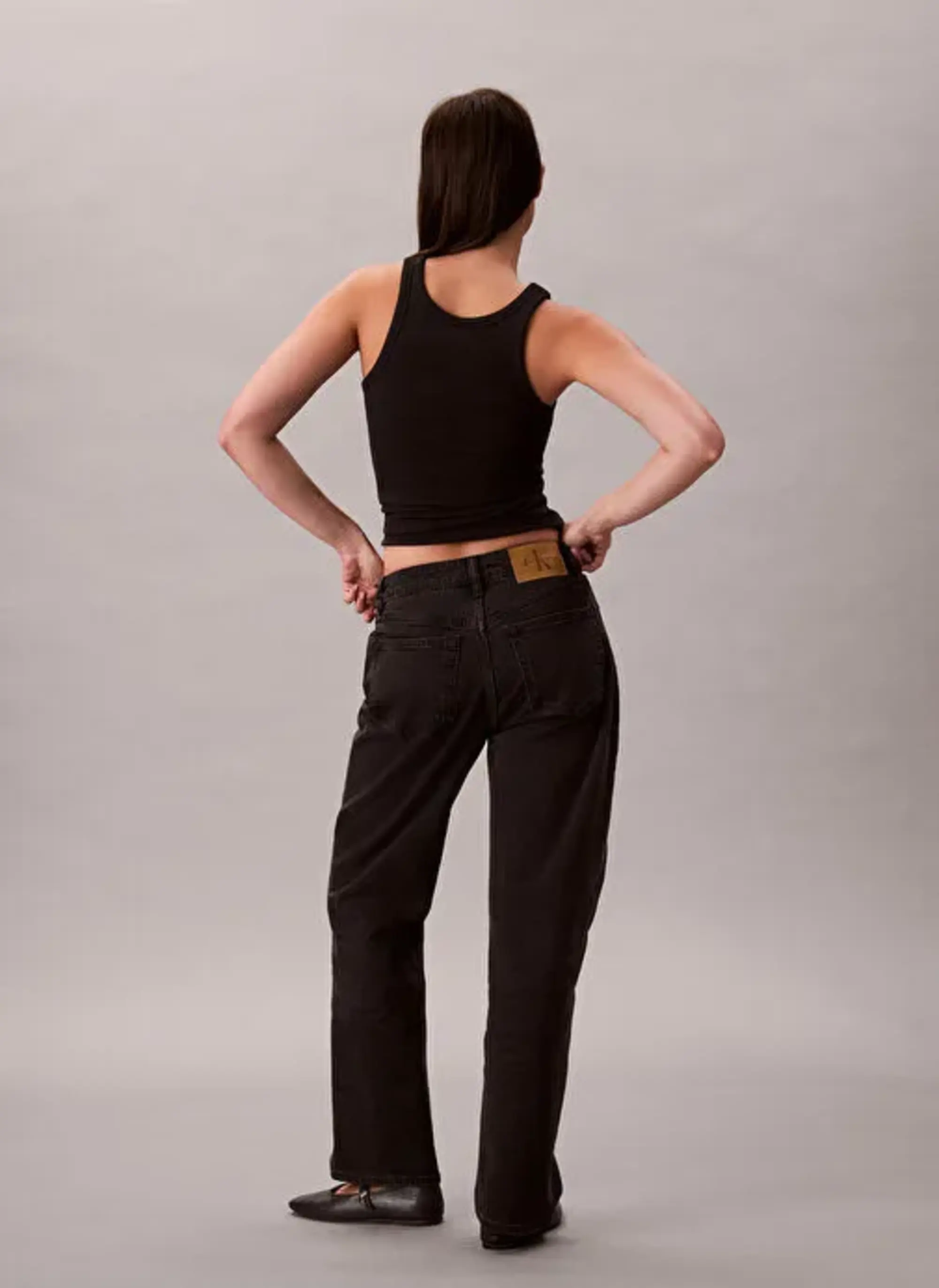 Calvin Klein HIGH RISE STRAIGHT CK ESSENTIAL Siyah Kadın Kot Pantolon