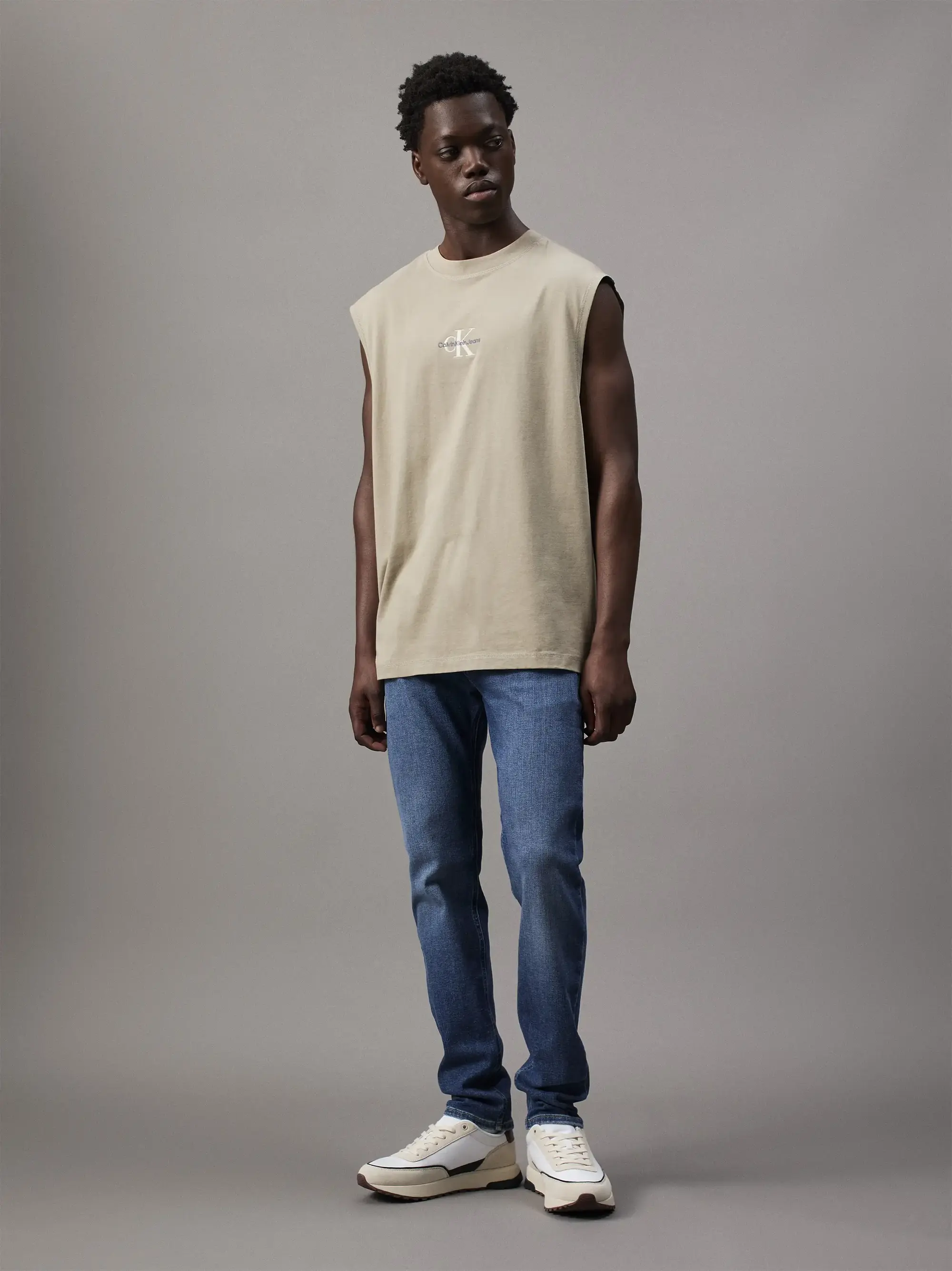 Calvin Klein MONOLOGO SLEEVELESS, PAH Bej Erkek T-Shirt & Polo