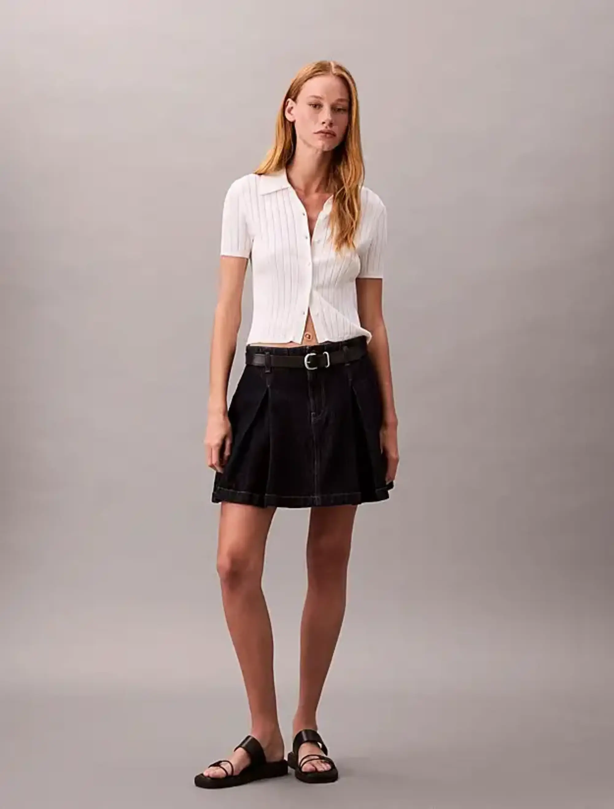Calvin Klein PLEATED DENIM SKIRT CK CLASSIC R Lacivert Kadın Etek