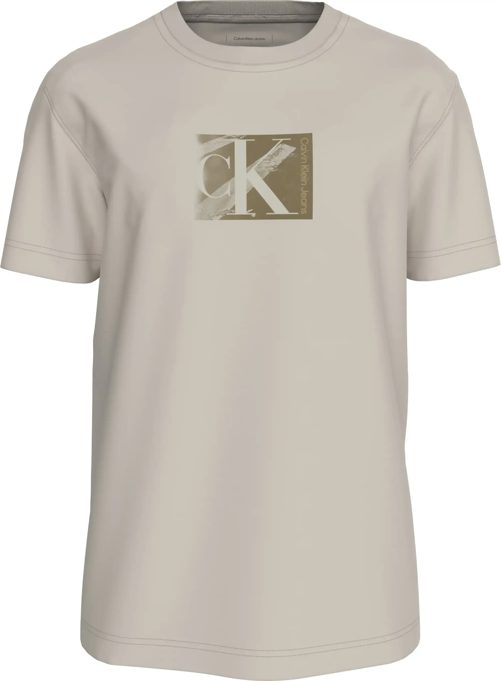 Calvin Klein SMALL CK BOX TEE, PDH Krem Erkek T-Shirt & Polo
