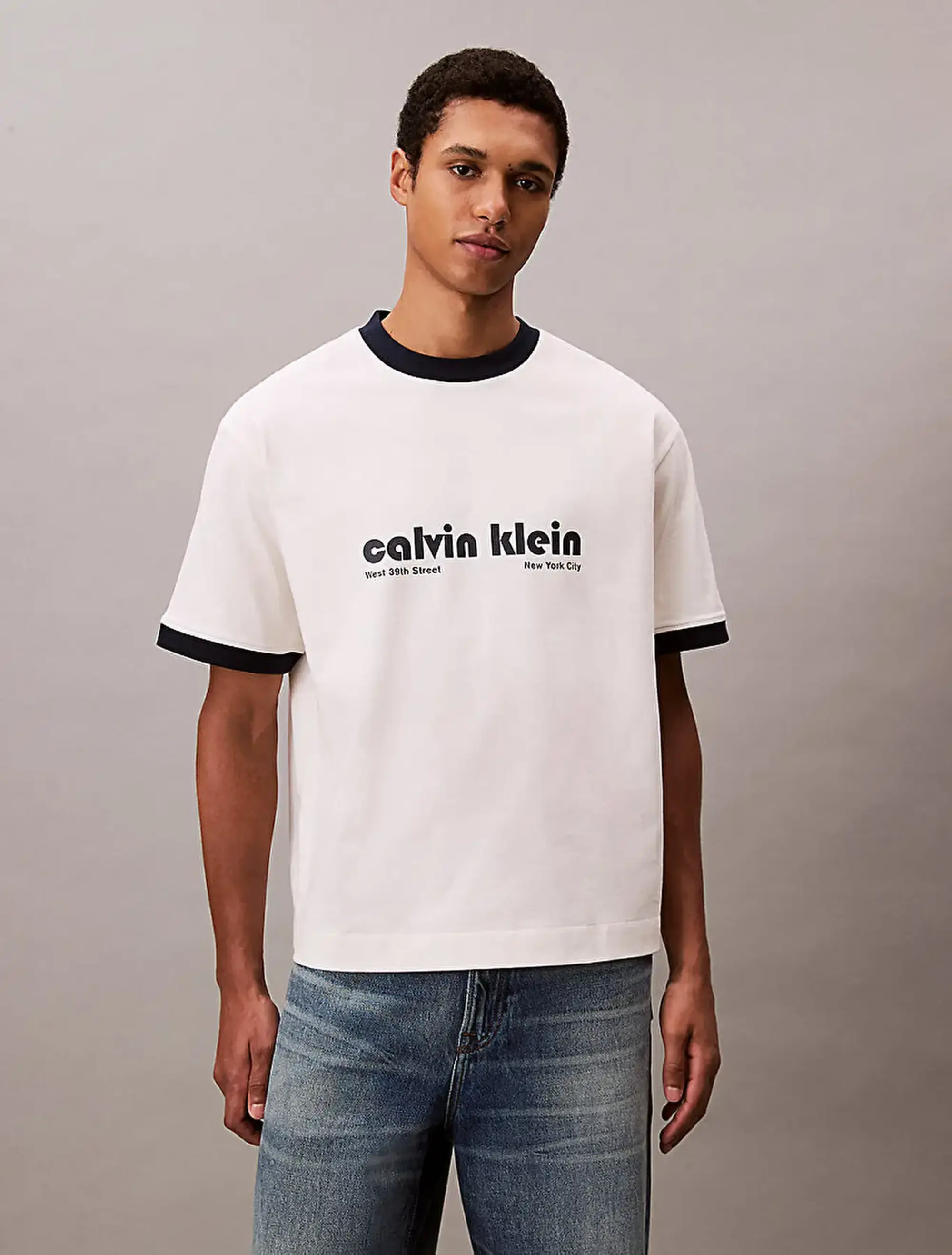 Calvin Klein SS RETRO LOGO RINGER 16S RLXD TE Bej Erkek Tişört