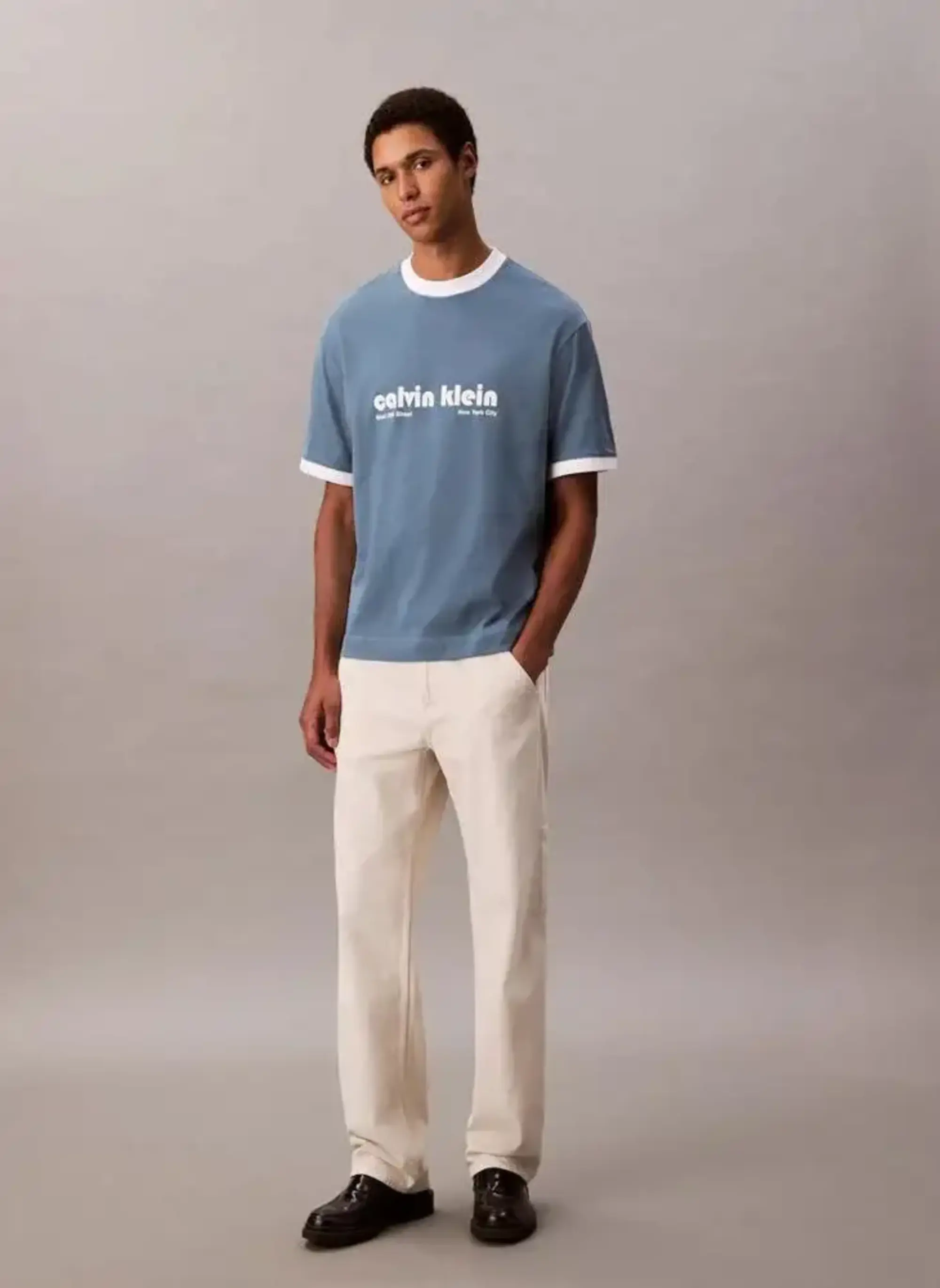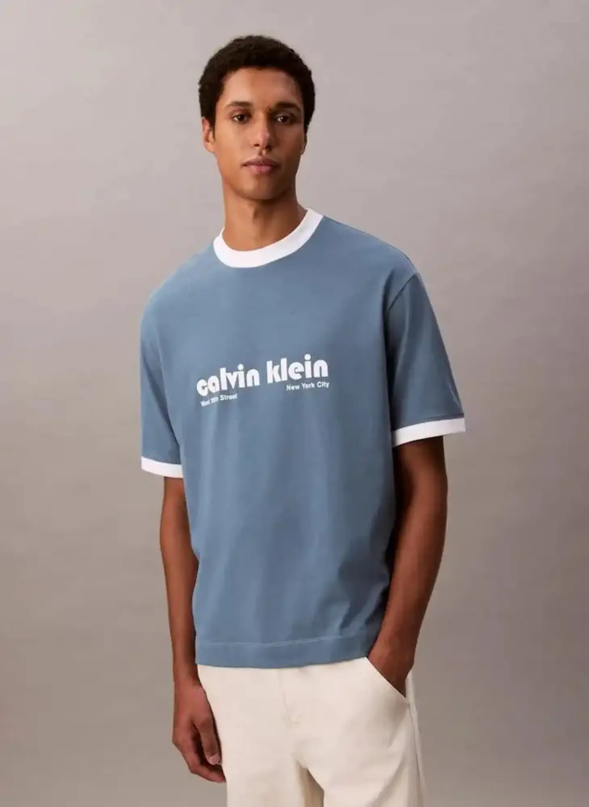 Calvin Klein SS RETRO LOGO RINGER 16S RLXD TE Mavi Erkek Tişört