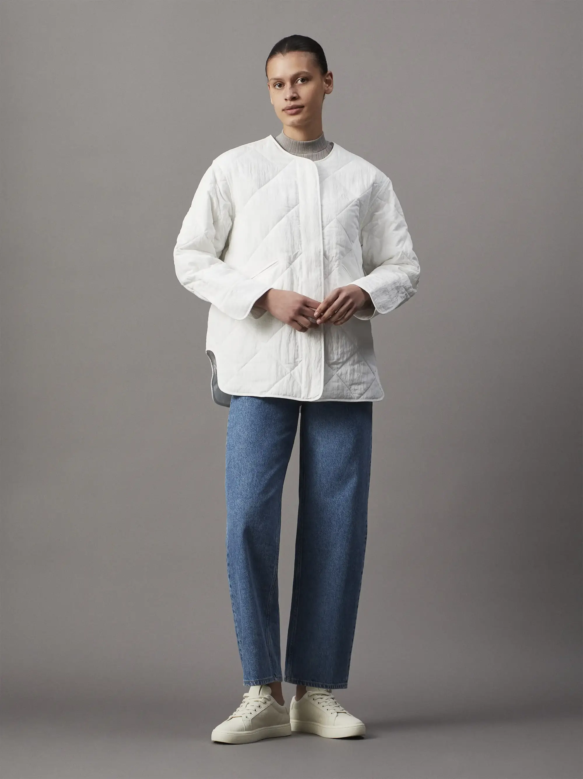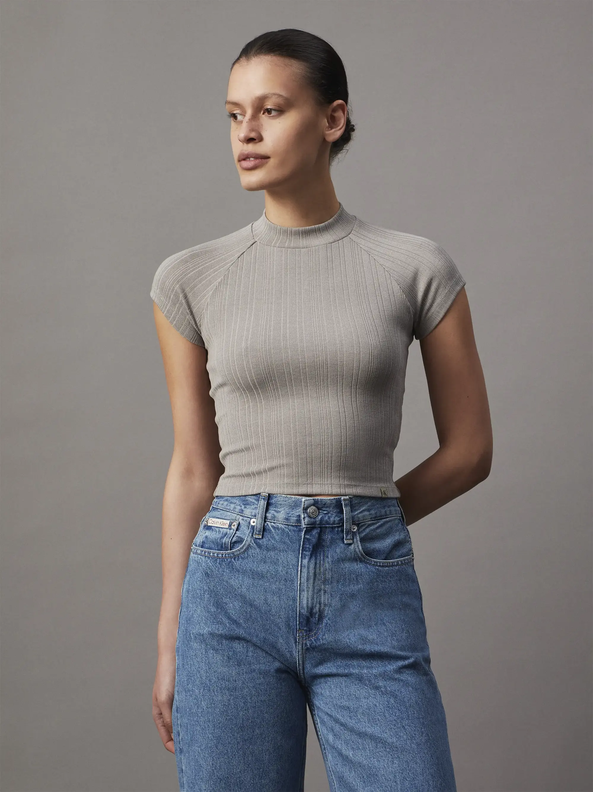 Calvin Klein WARM TEXTURE RIB MOC, PEO Gri Kadın T-Shirt & Polo