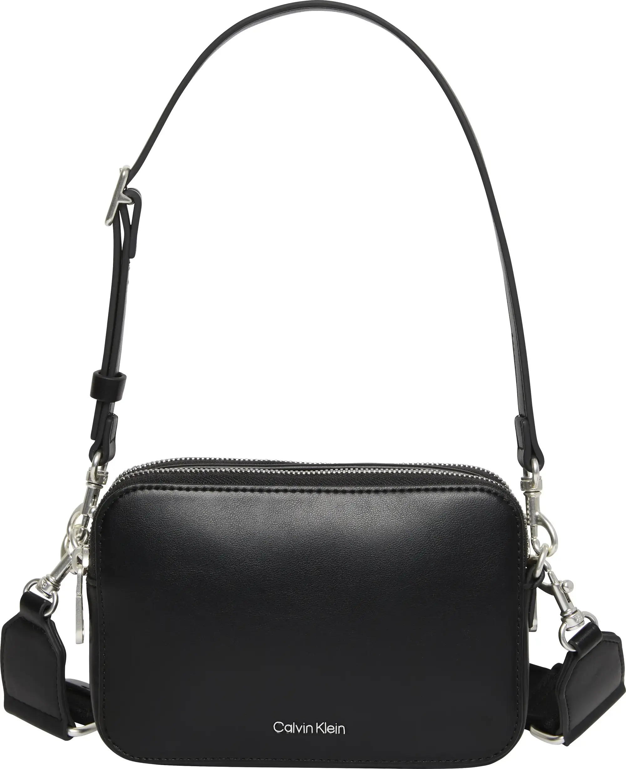 Calvin Klein WEBBING DOUBLE STRAP CAMERA BAG Kadın Siyah El Çanta