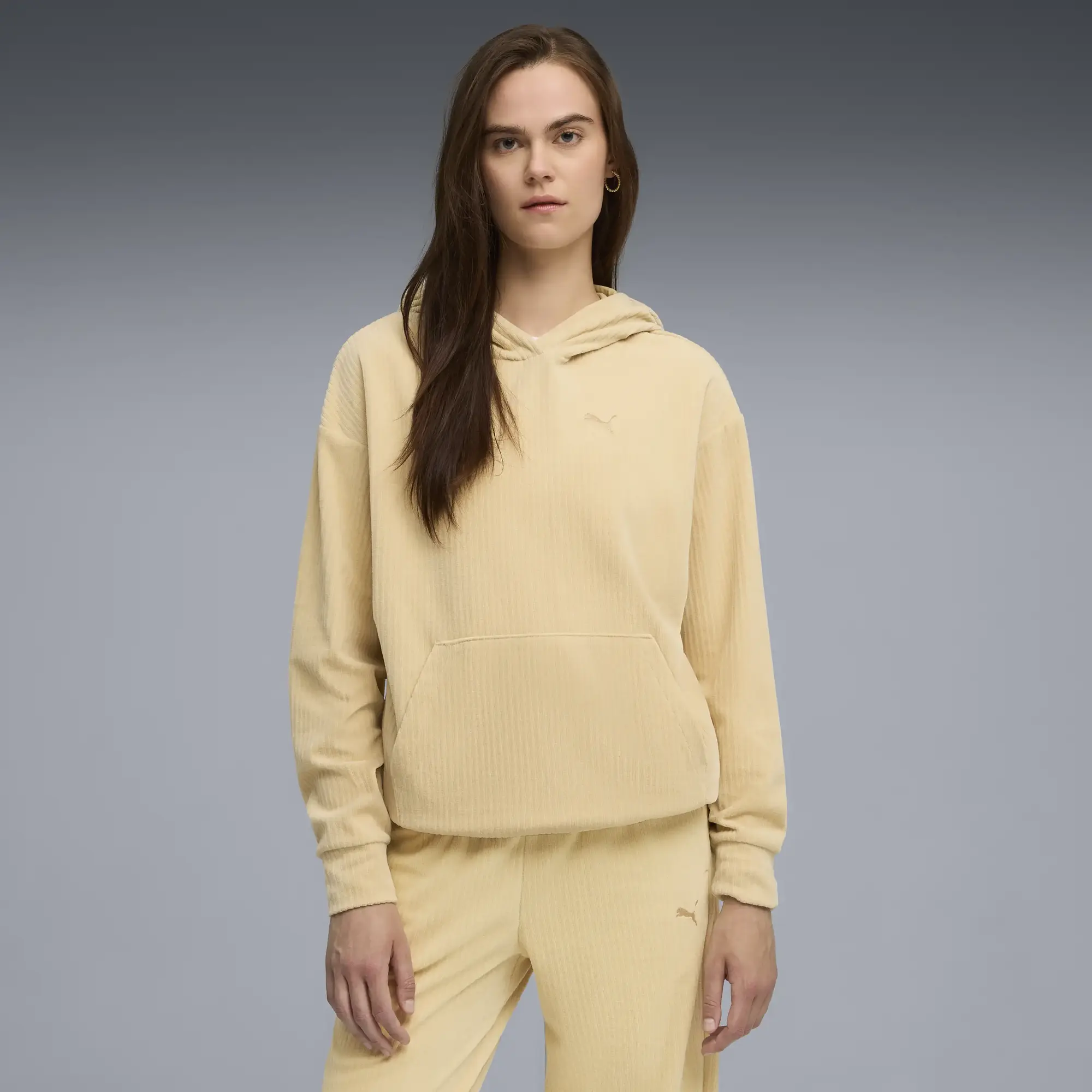 Puma ESS ELEVATED Velour Hoodie Sarı Kadın Kadife Kapişonlu Sweatshirt