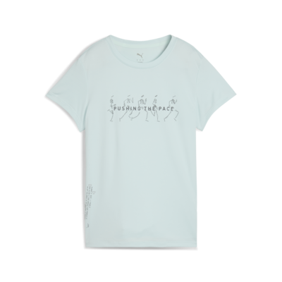 Puma GRAPHICS RUNNING SLOGAN TEE Mavi Kadın T-Shirt