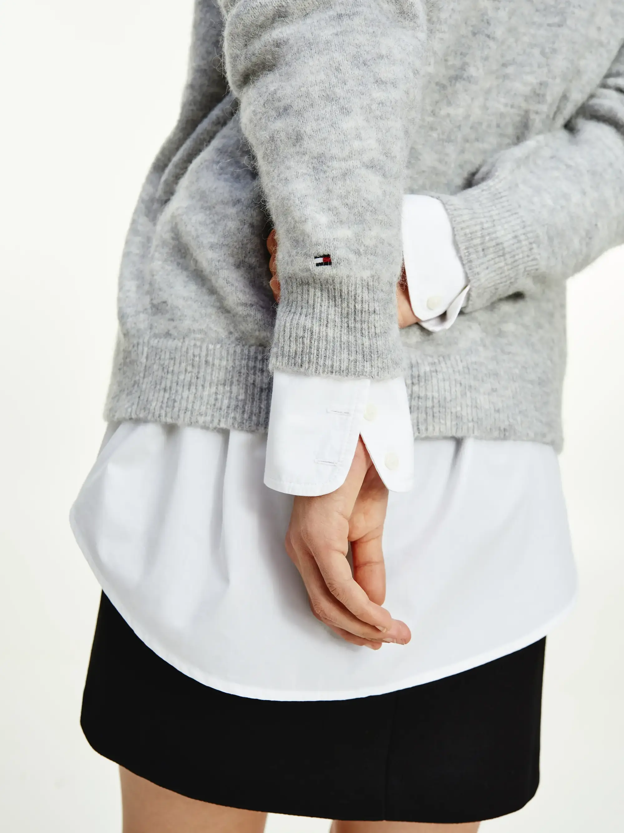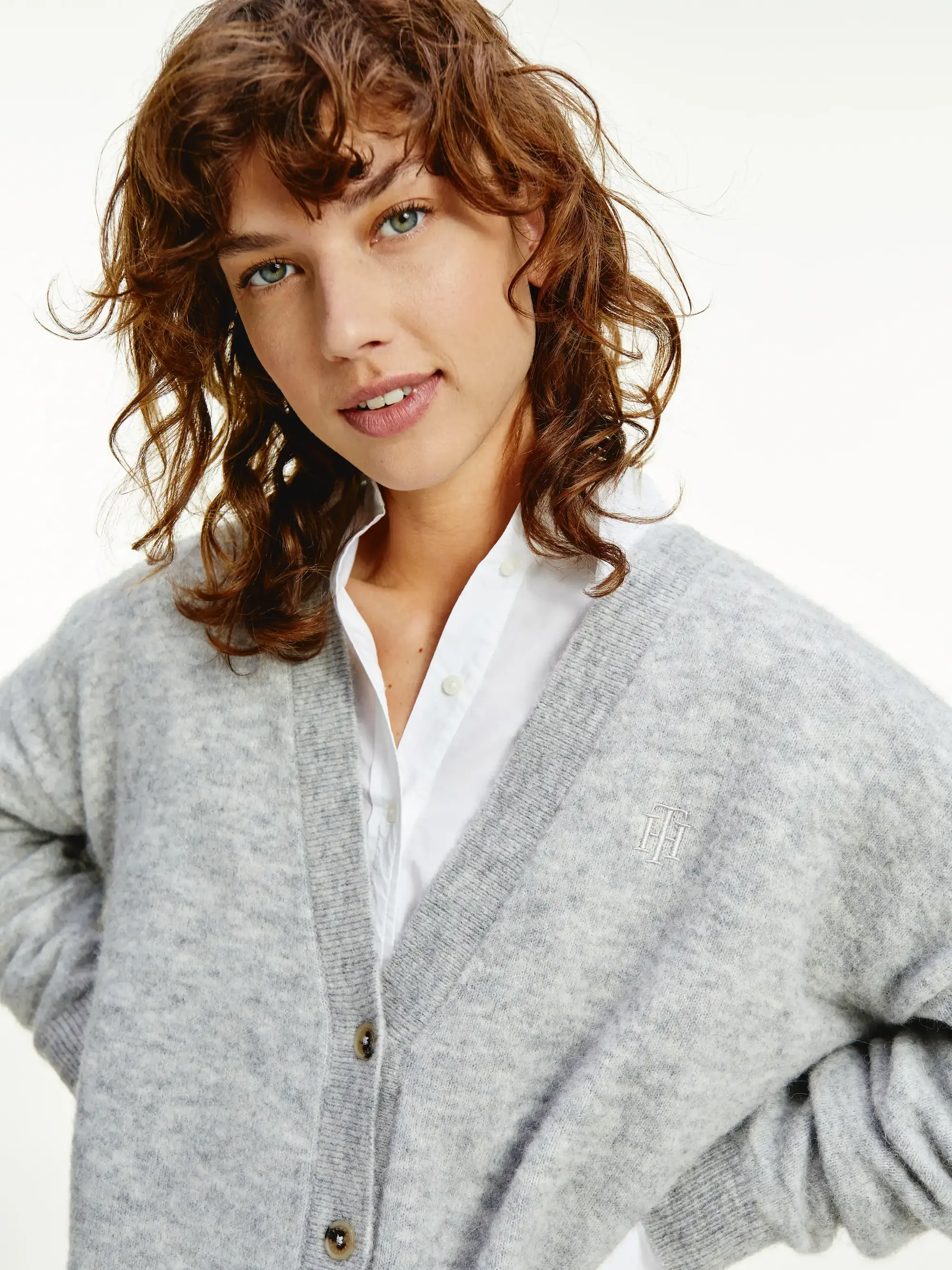 Tommy Hilfiger ALPACA SHORT V-NK CA Kadın Gri Kazak