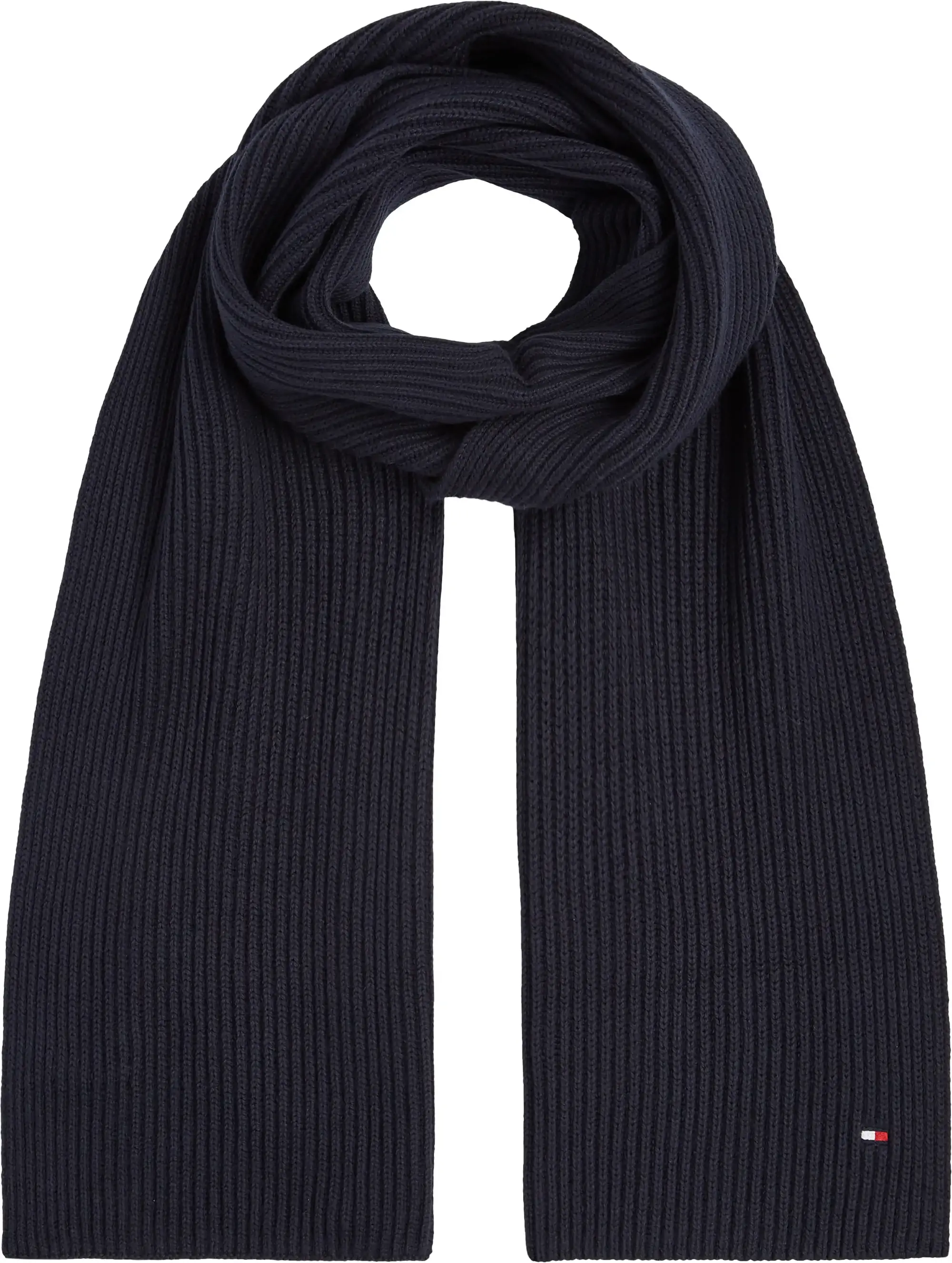 Tommy Hilfiger ESSENTIAL FLAG KNITT Erkek Siyah Atkı