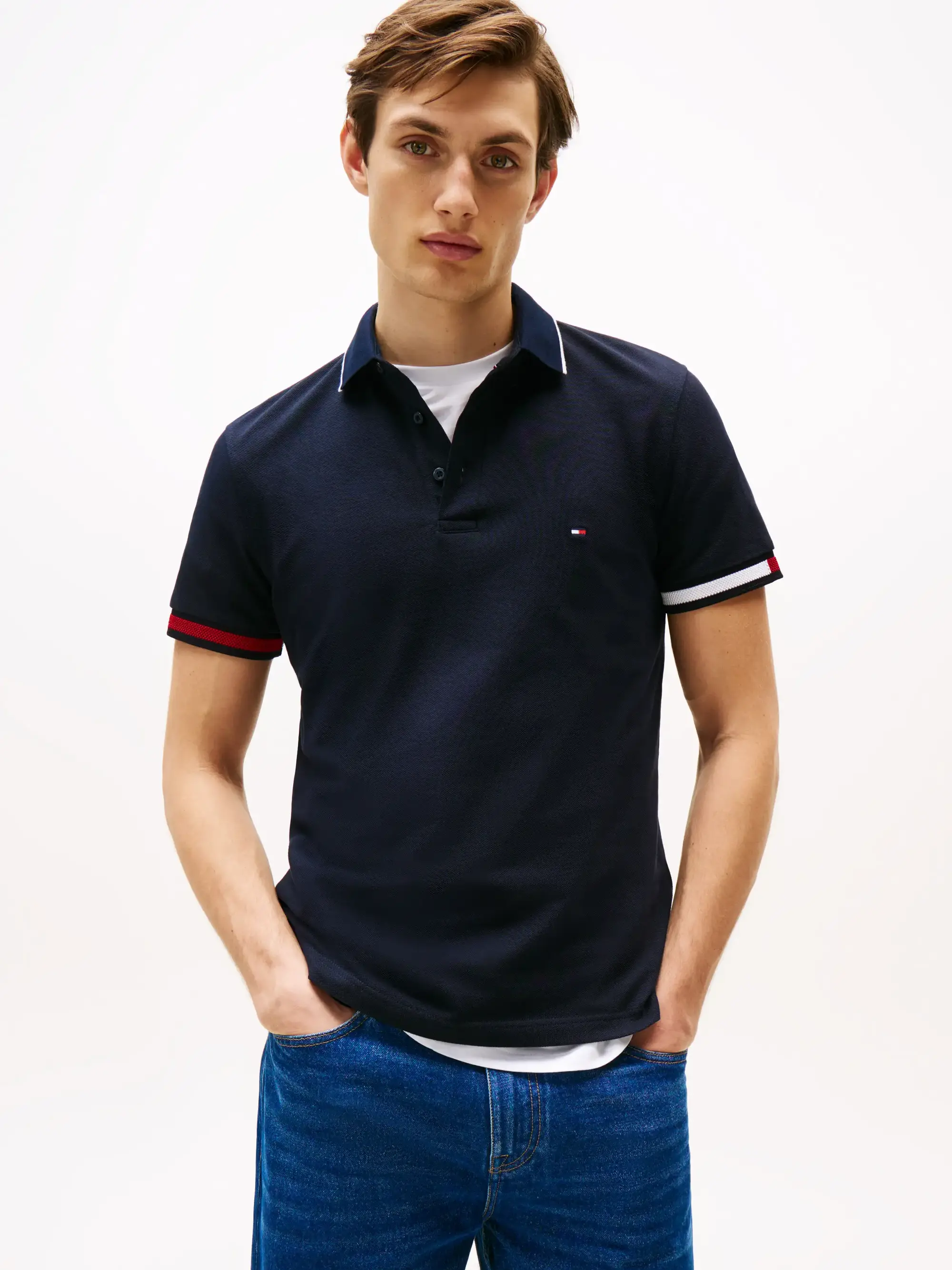 Tommy Hilfiger FLAG CUFF SLIM FIT P, DW5 Siyah Erkek T-Shirt & Polo