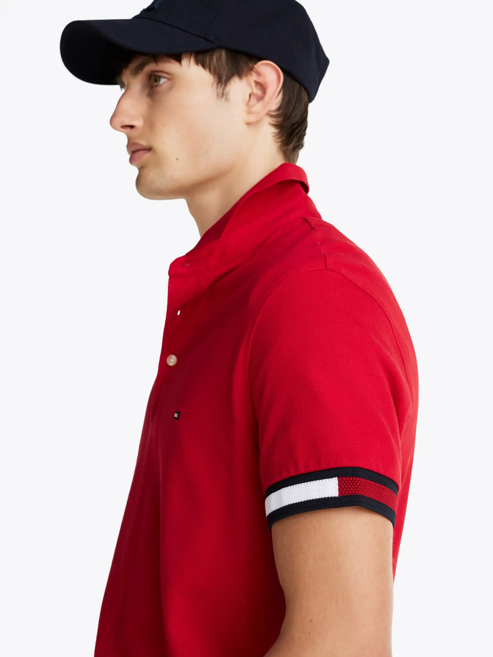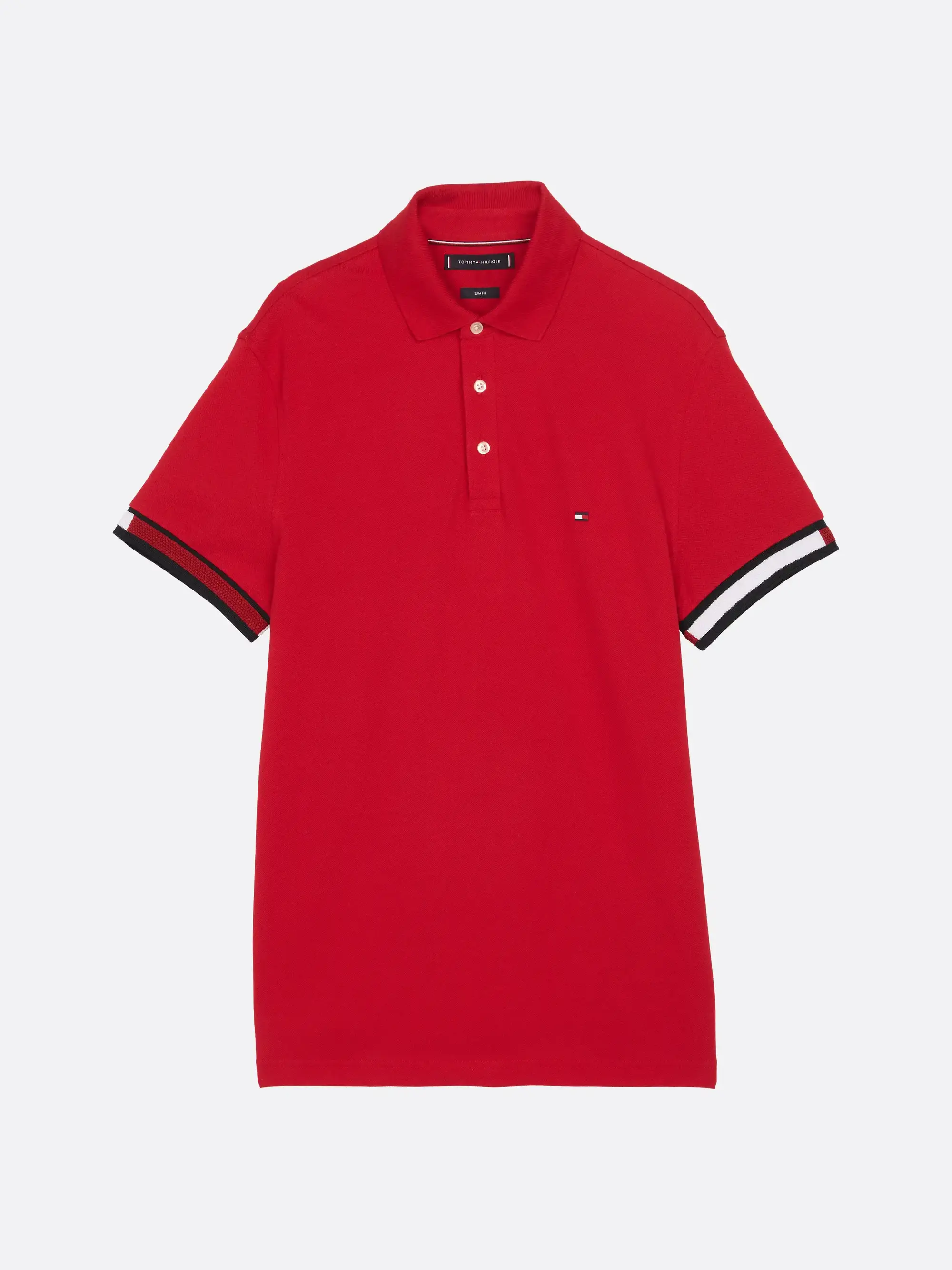 Tommy Hilfiger FLAG CUFF SLIM POLO, XLD Kırmızı Erkek T-Shirt & Polo