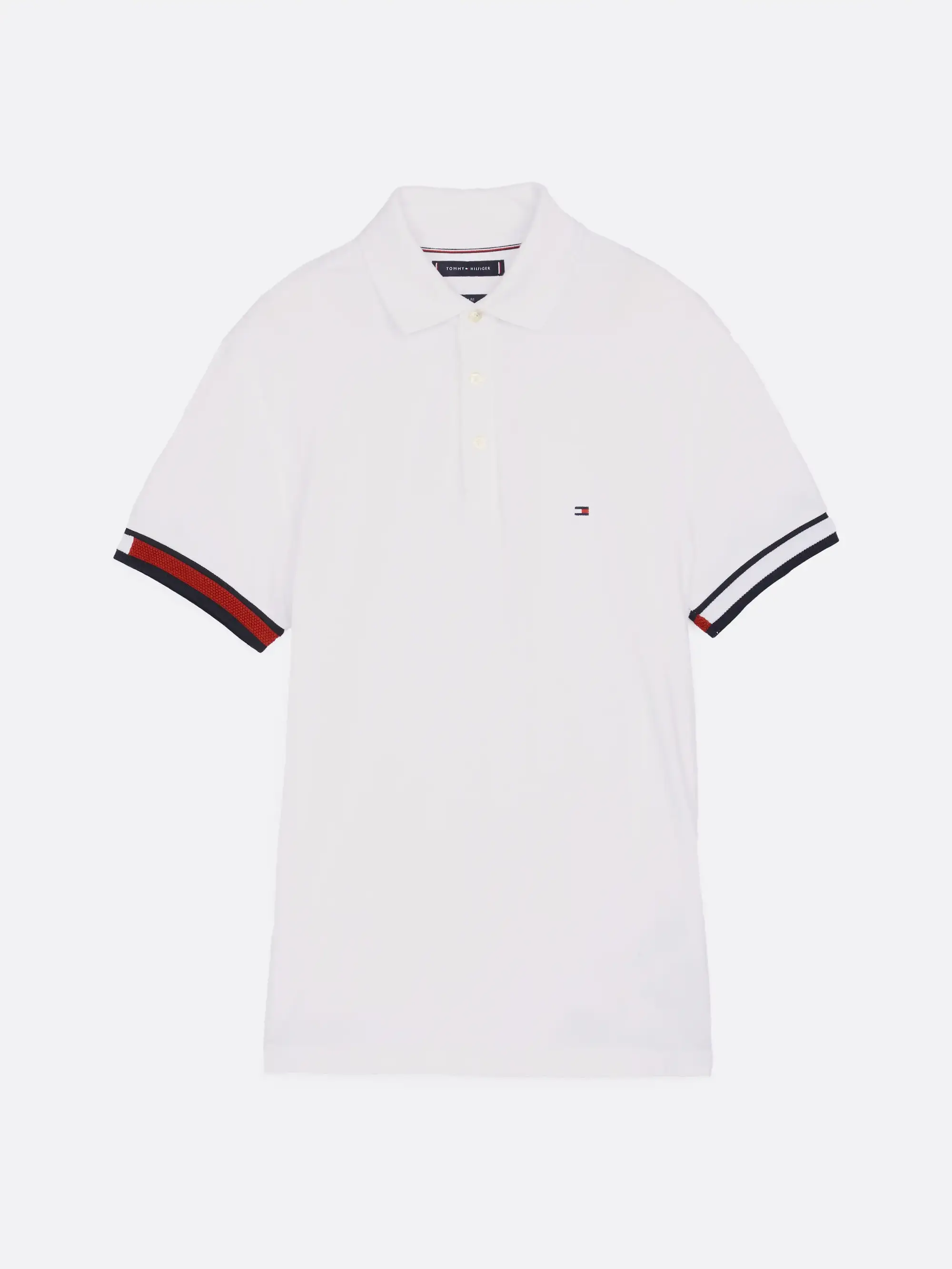 Tommy Hilfiger FLAG CUFF SLIM POLO, YBR Beyaz Erkek T-Shirt & Polo