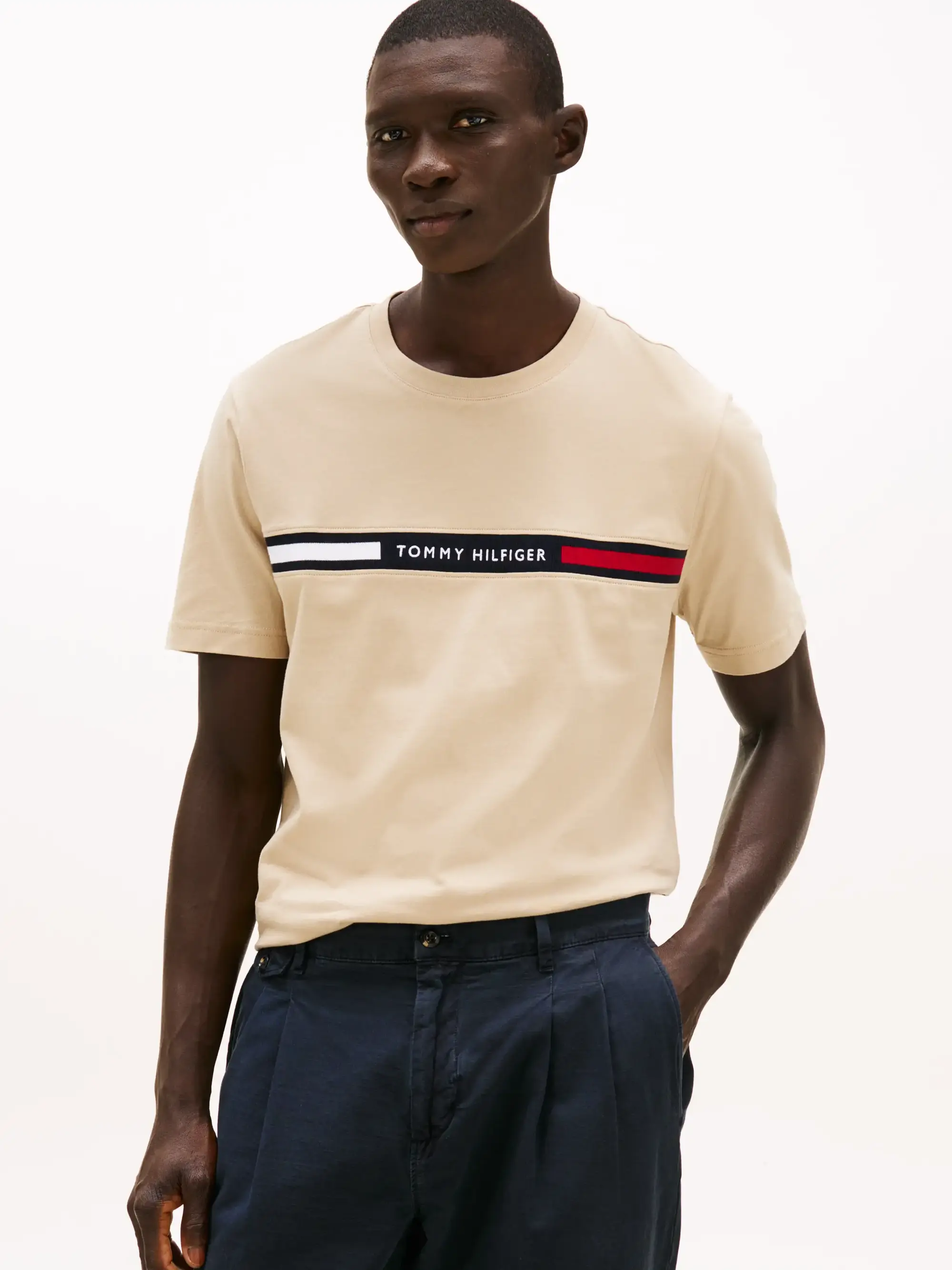 Tommy Hilfiger HILFIGER CHEST INSER, RBT Bej Erkek T-Shirt & Polo