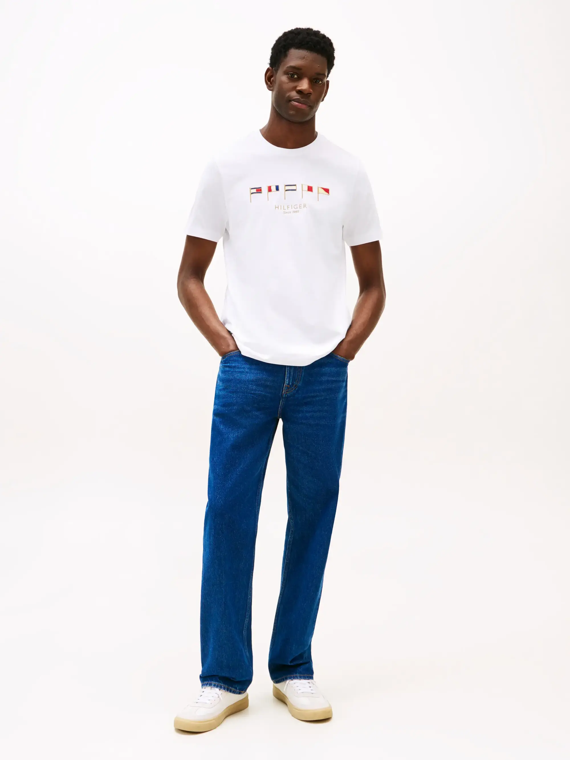 Tommy Hilfiger HILFIGER MULTI FLAGS, YBR Beyaz Erkek T-Shirt & Polo