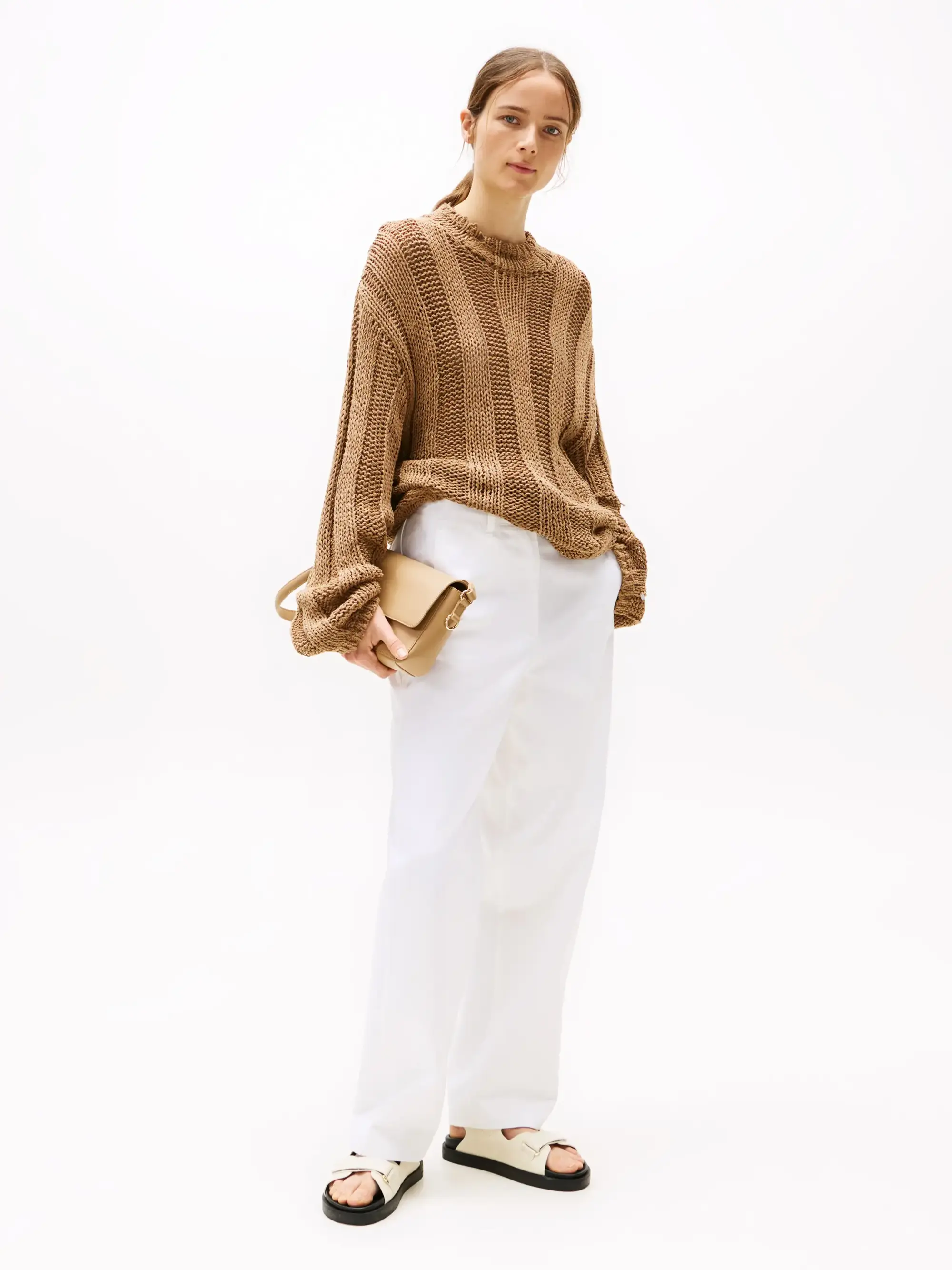 Tommy Hilfiger LEATHER SPORTY SANDA, ACJ Krem Kadın Terlik