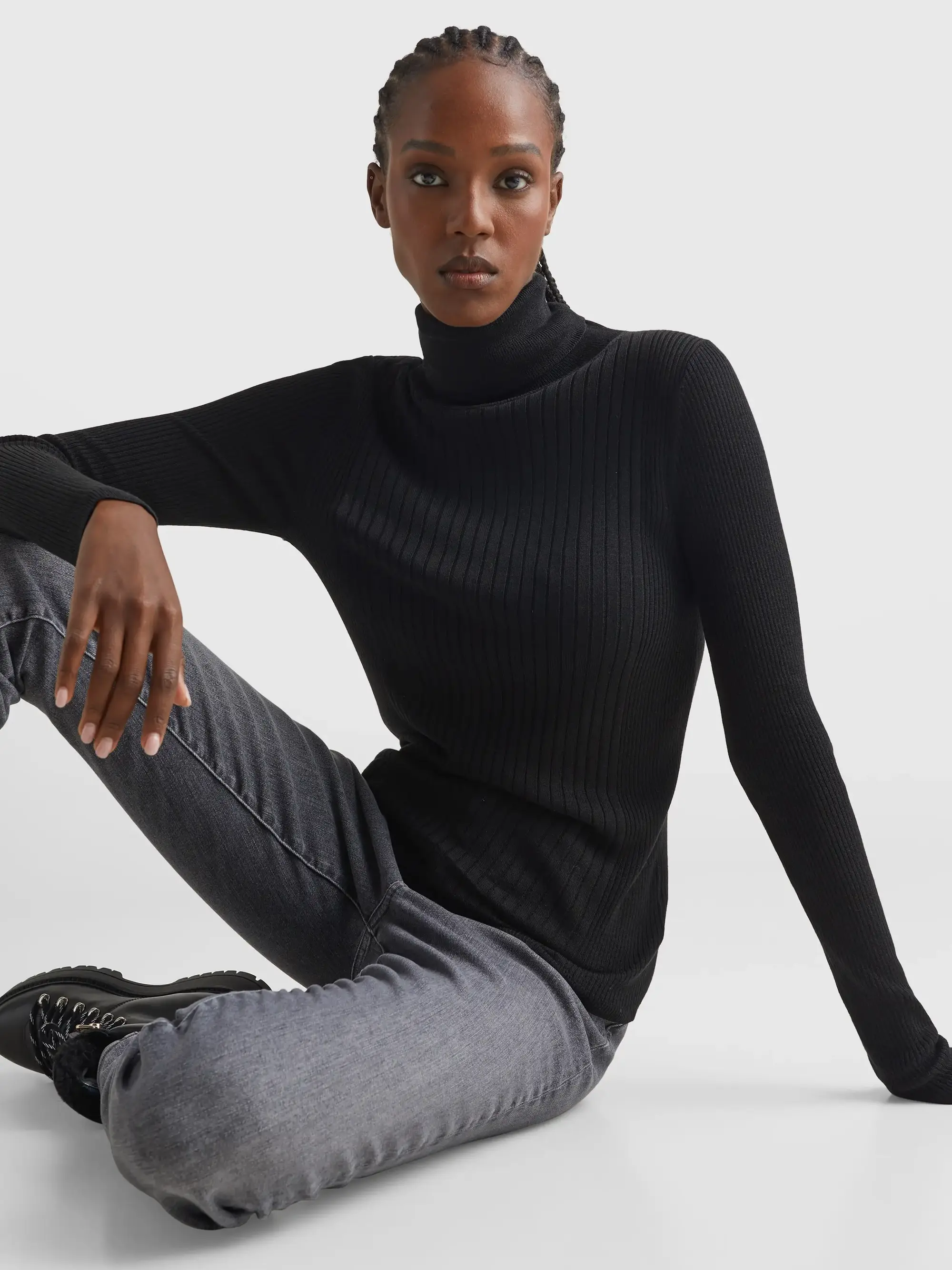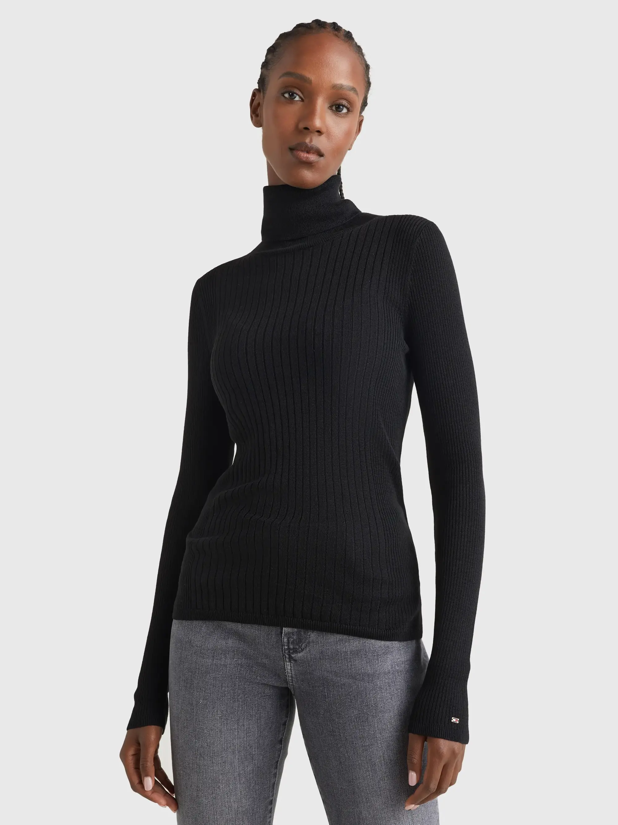 Tommy Hilfiger LYOCELL SILK ROLL-NK Kadın Siyah Kazak