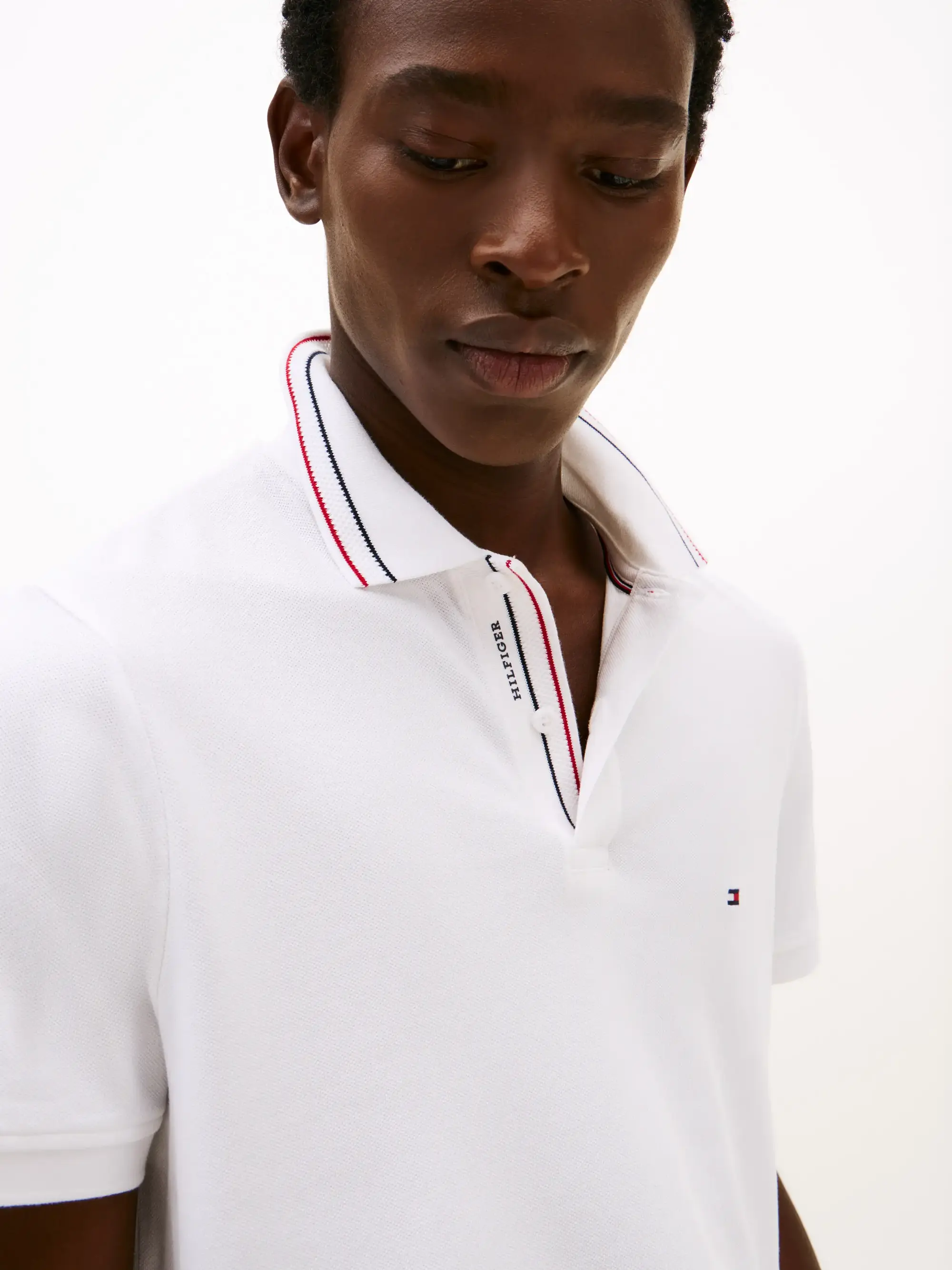 Tommy Hilfiger PLACKET INTEREST REG, YBR Beyaz Erkek T-Shirt & Polo