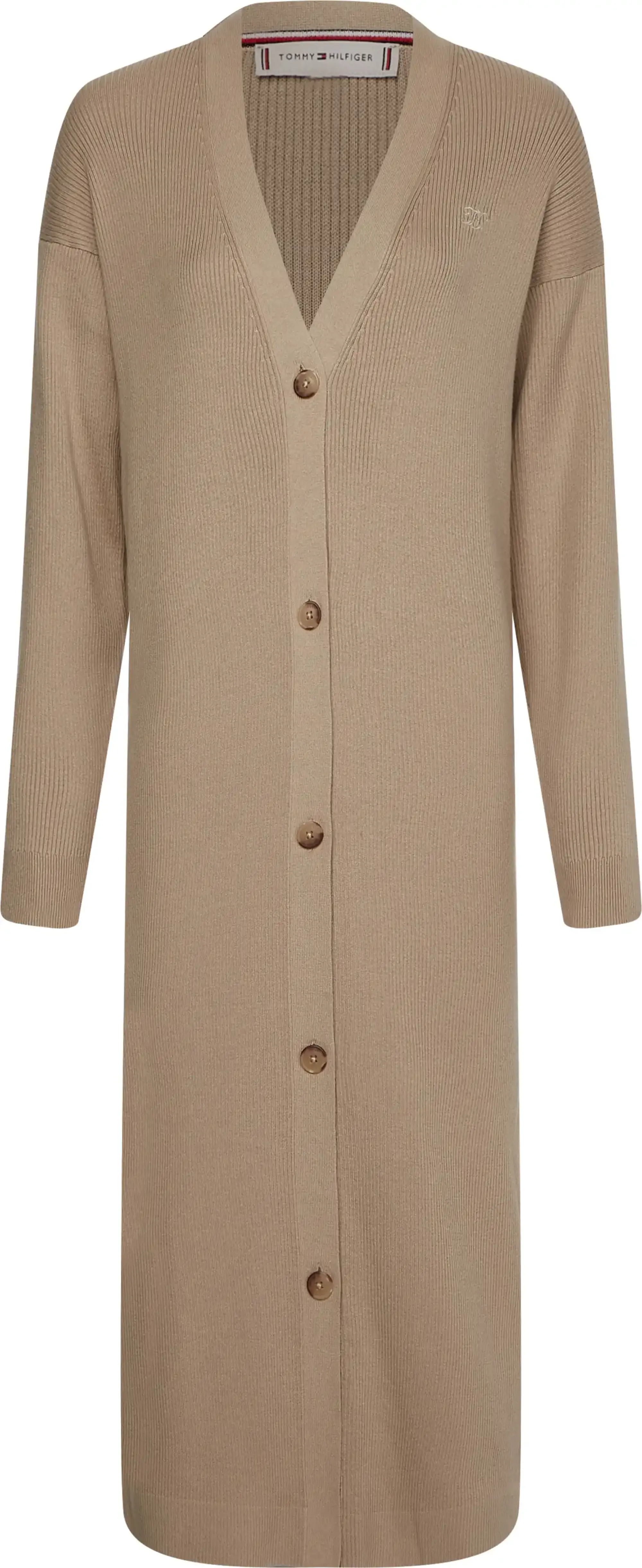 Tommy Hilfiger SOFT RIB MIDI V-NK C Kadın Bej Kazak