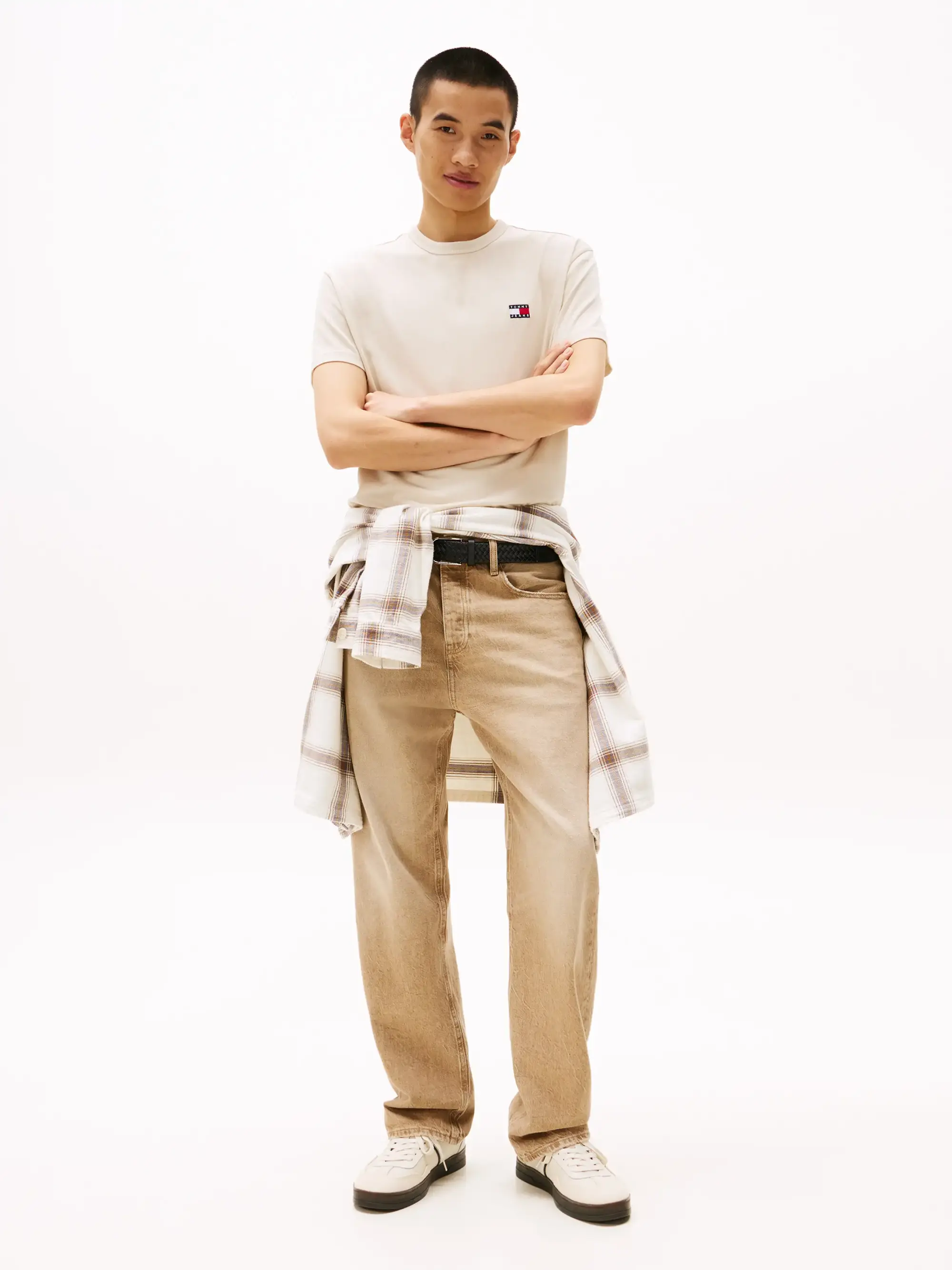 Tommy Hilfiger TJM REG BADGE TEE EX, ACG Krem Erkek T-Shirt & Polo