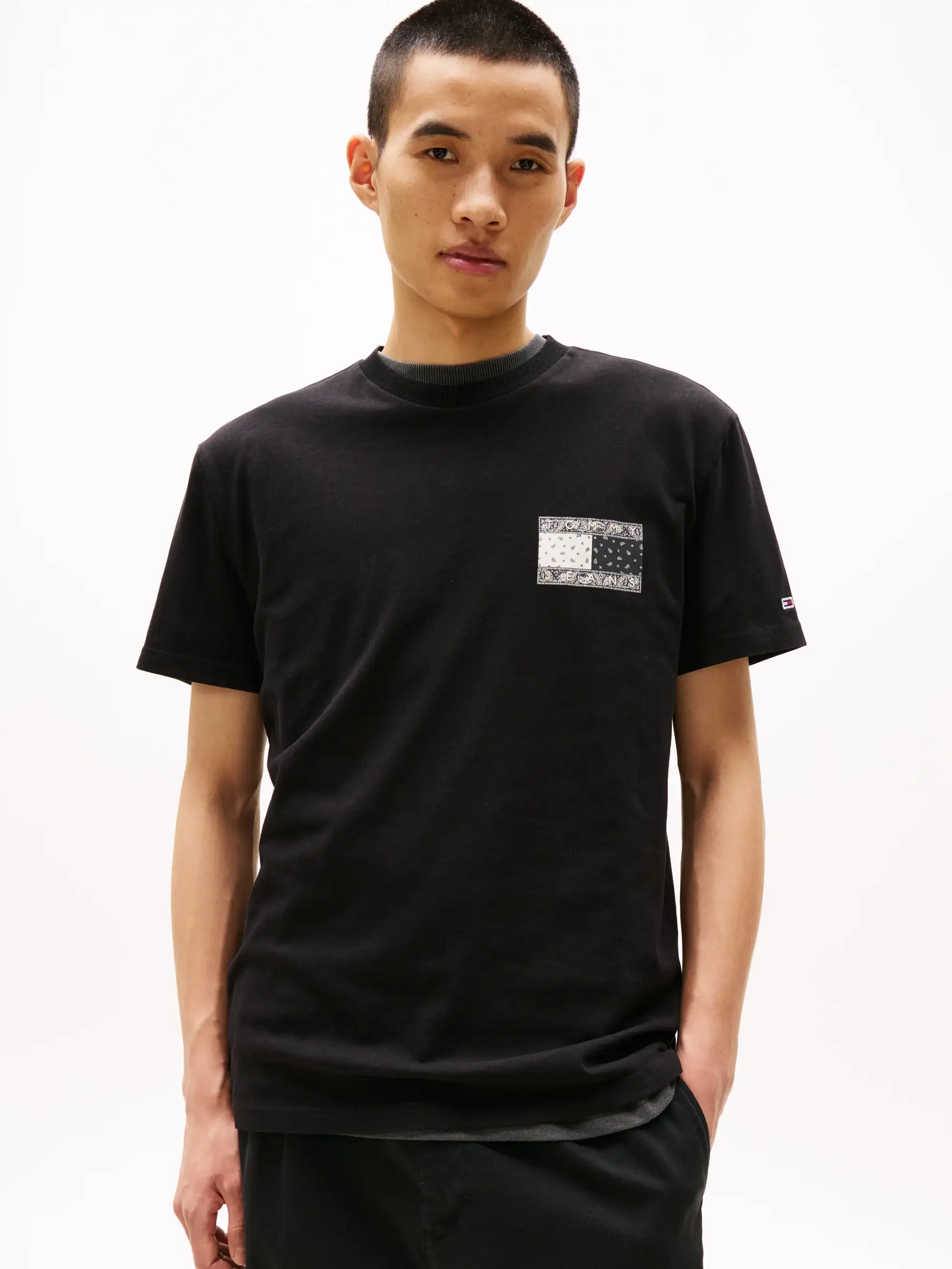 Tommy Hilfiger TJM REG PAISLEY FLAG, BDS Siyah Erkek T-Shirt & Polo