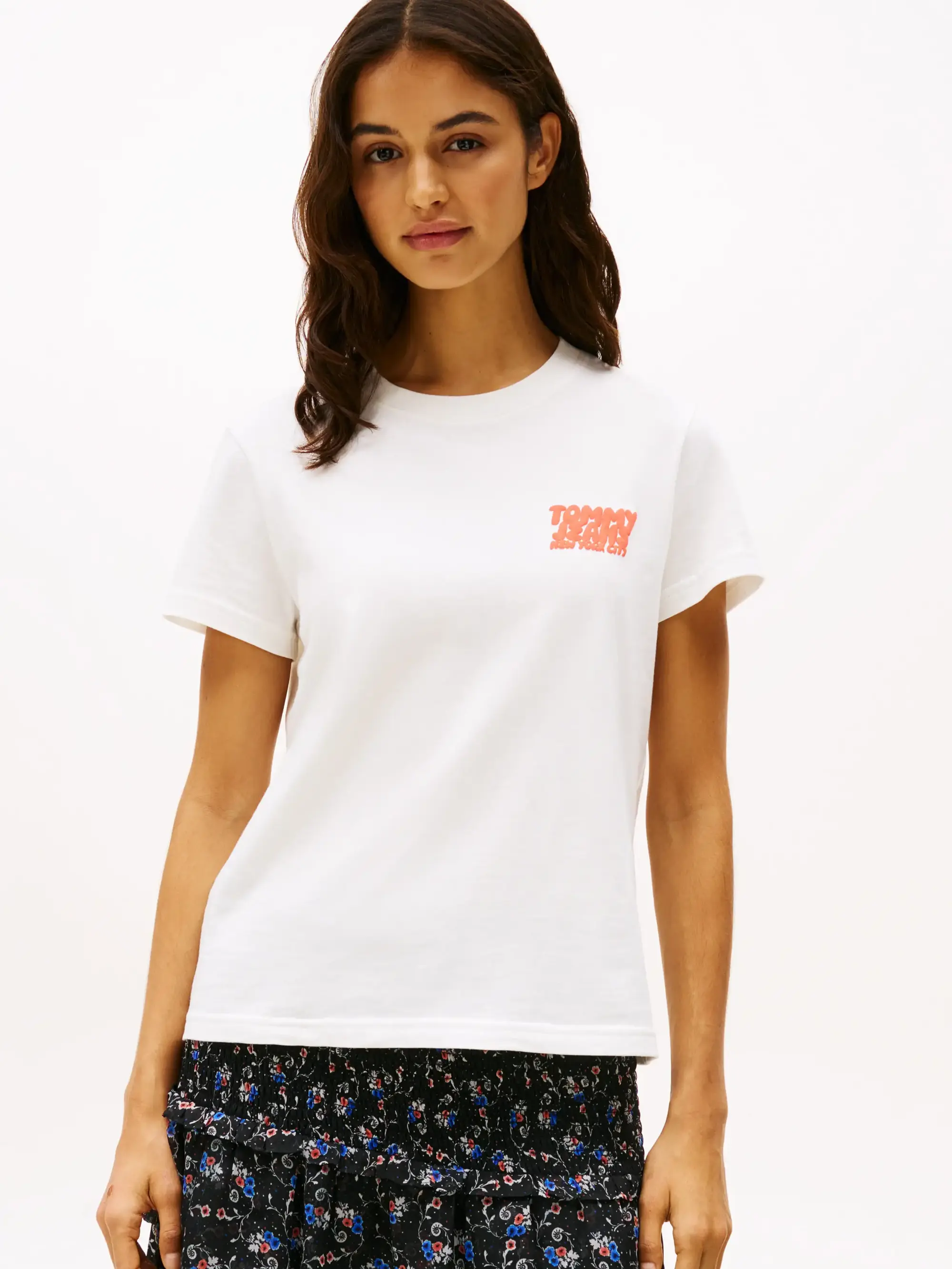 Tommy Hilfiger TJW REG TJ BUBBLE TE, YBL Beyaz Kadın T-Shirt & Polo