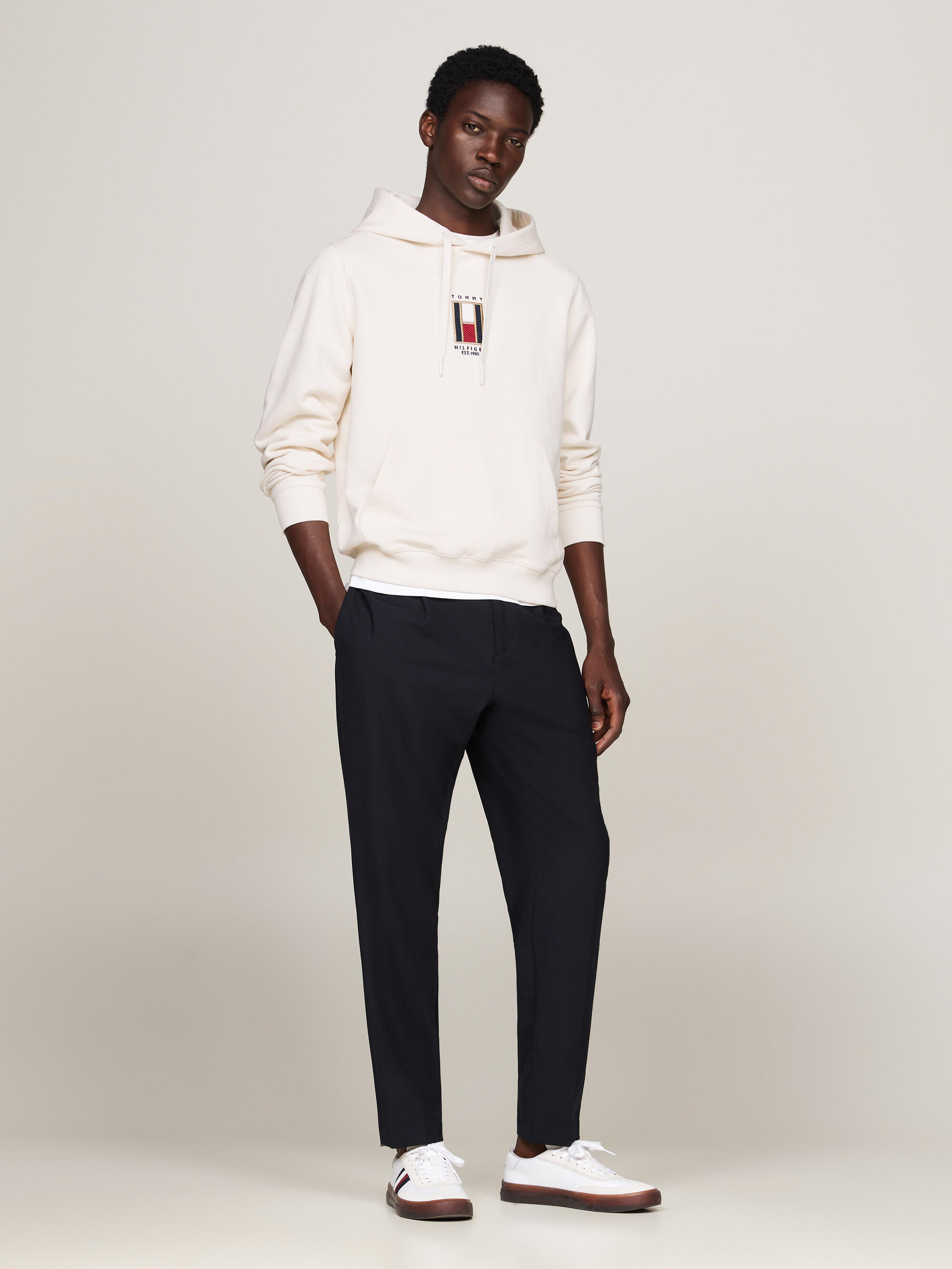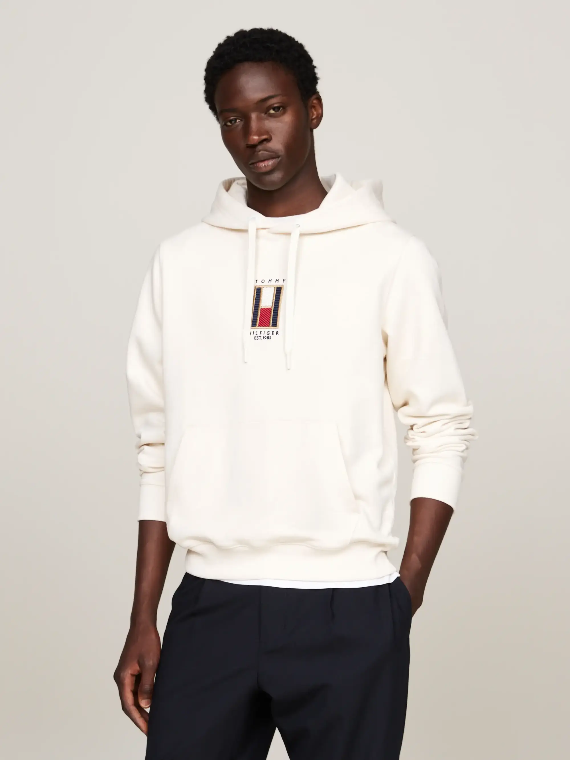 Tommy Hilfiger VERTICAL FLAG HOODY Erkek Krem Sweatshirt
